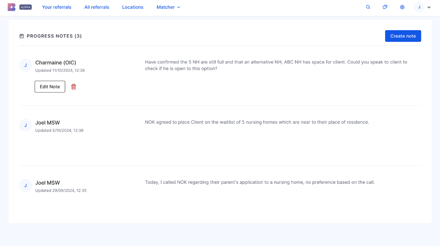 Progress notes within a referral are for contributors to add notes that can be viewed by any contributors of the referral as well as SP users who are processing the referral.