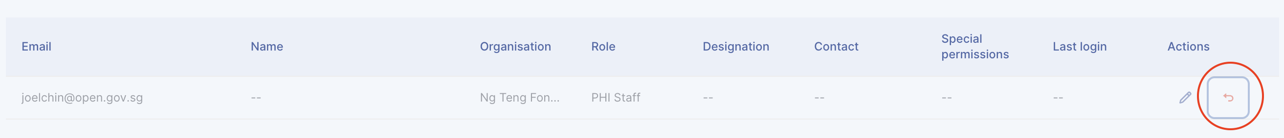 If your account is deactivated, it will appeared greyed out. Your admin can re-activate the account by clicking on the re-activate button.