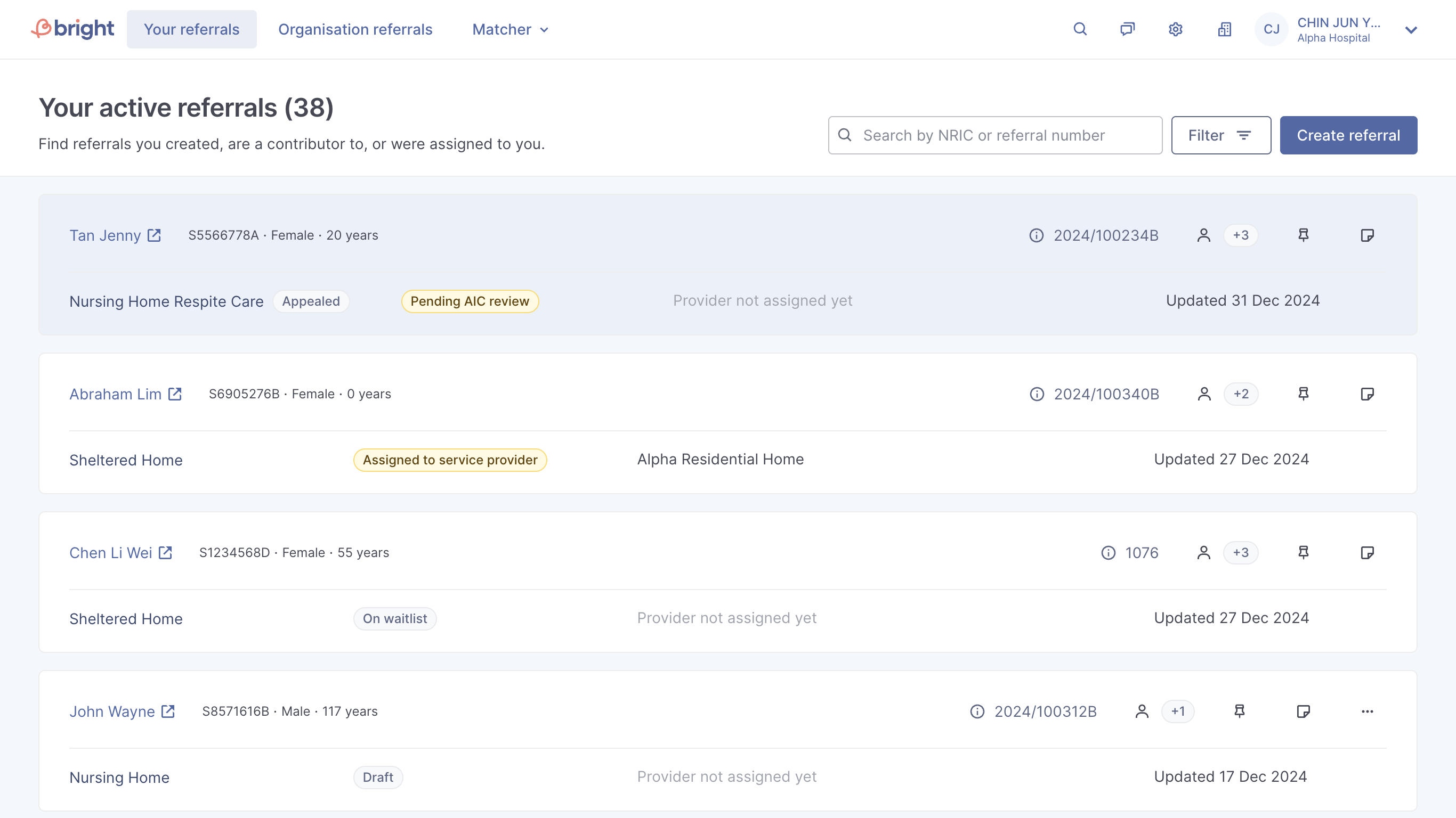 Referrals you created or where you are a contributor will be in 'Your referrals'. Referrals that were created under your institution will be in 'Organisation referrals'.