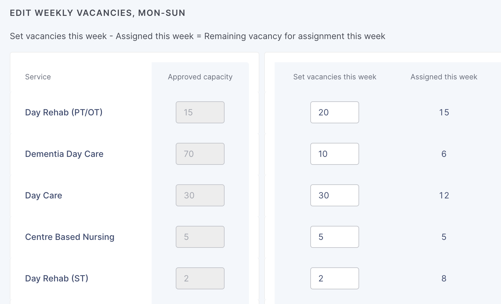 Approved capacity is the capacity as approved by MOH for your location and can only be revised by AIC. You may use this number as a guide when declaring your vacancies for the week. For any revision, do approach AIC accordingly.