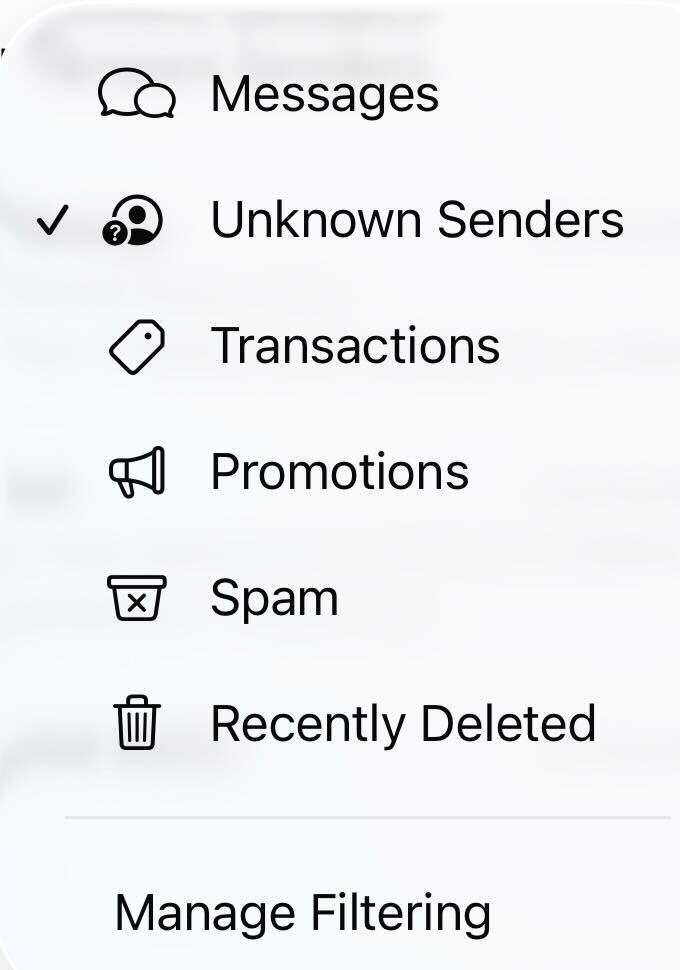 If you have upgraded to iOS26, you might notice messages from the "gov.sg" sender ID going straight to your spam folder without any filtering permissions set up. This is a new feature introduced by Apple to screen for messages from unknown senders. Do check your "Unknown Senders" folder for "gov.sg" messages - click on the blue lined icon at the top right of your screen and select from the dropdown list.
