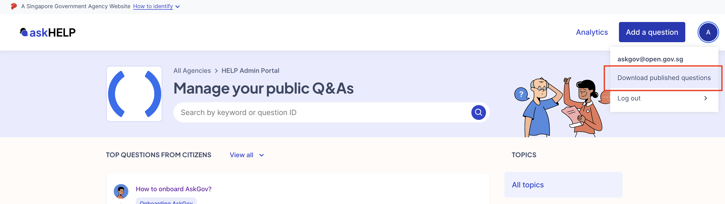 1. For agency admins, log in to your AskGov admin portal at https://ask.gov.sg/admin/login with your government email address