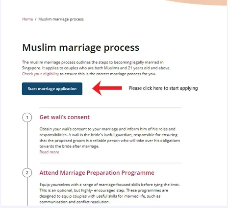 We would like you to go to this page to submit your marriage application: https://www.marriage.gov.sg/muslim/marriage-process and click on the "Start Marriage Application" shown: