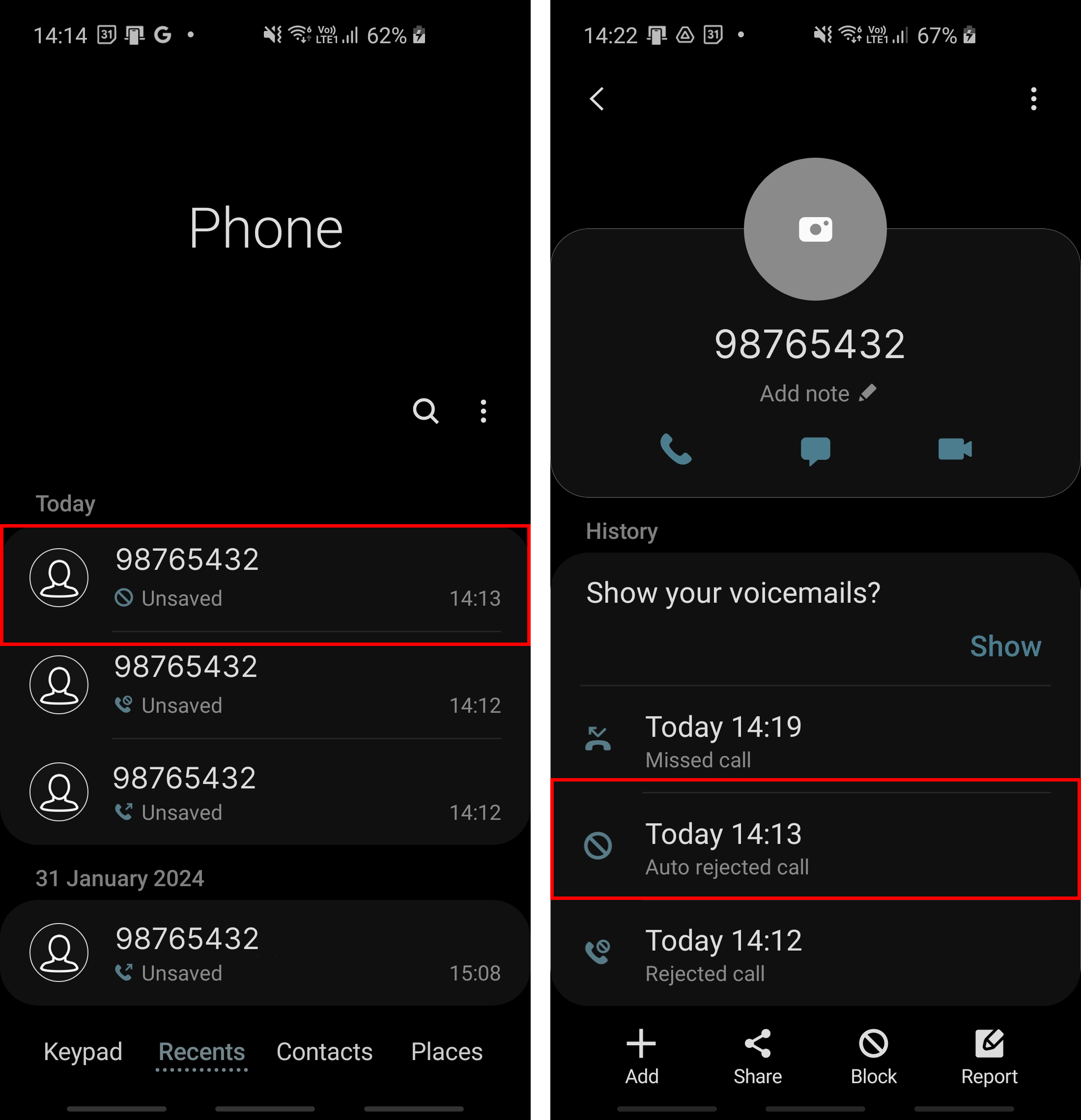 To check if a call is blocked by the ScamShield app, go to your call log > look for a blocked call 🚫 > click on info ℹ️ > it should say “auto rejected call”. Please refer to the following image: