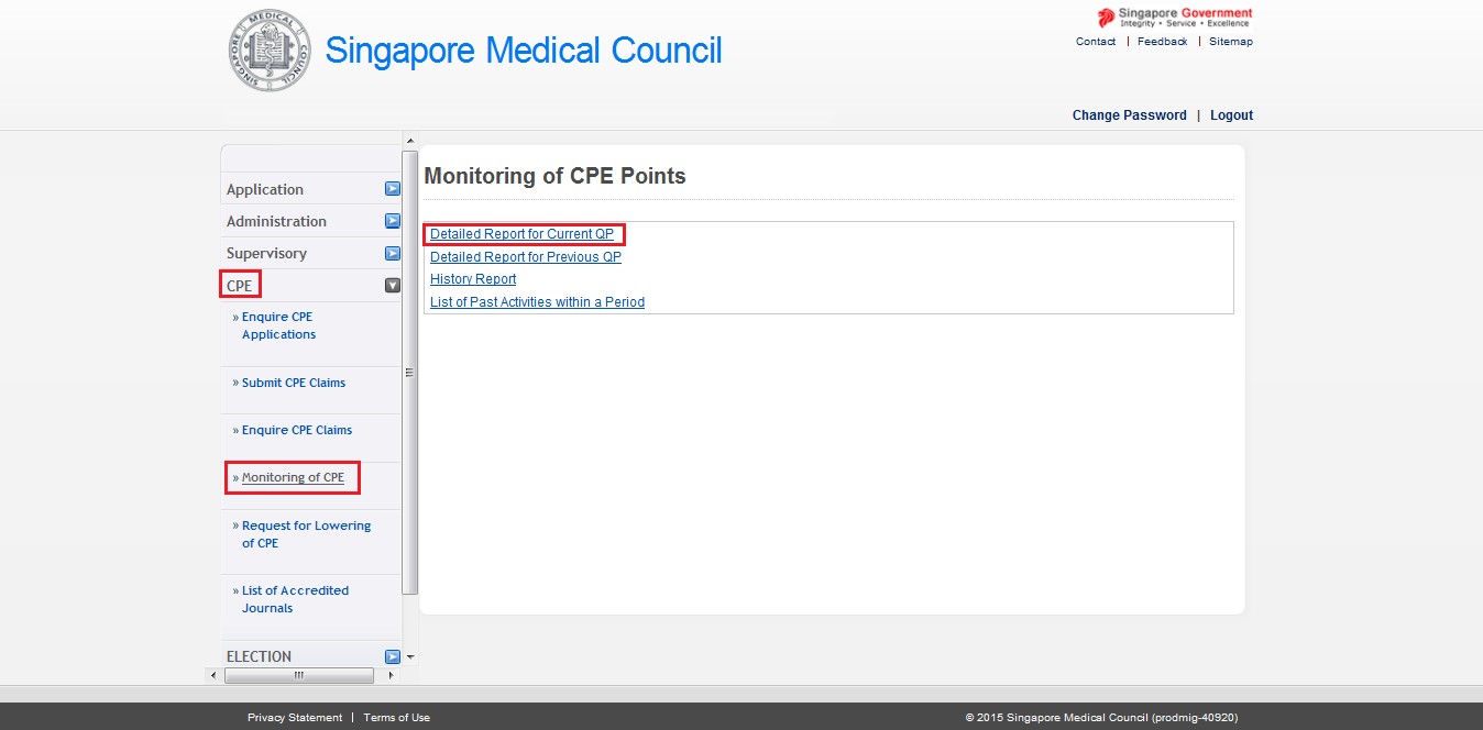 (iii) Select “Detailed Report for Current QP” (as shown below).